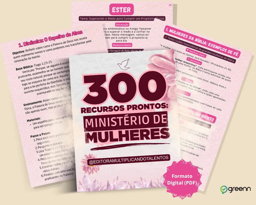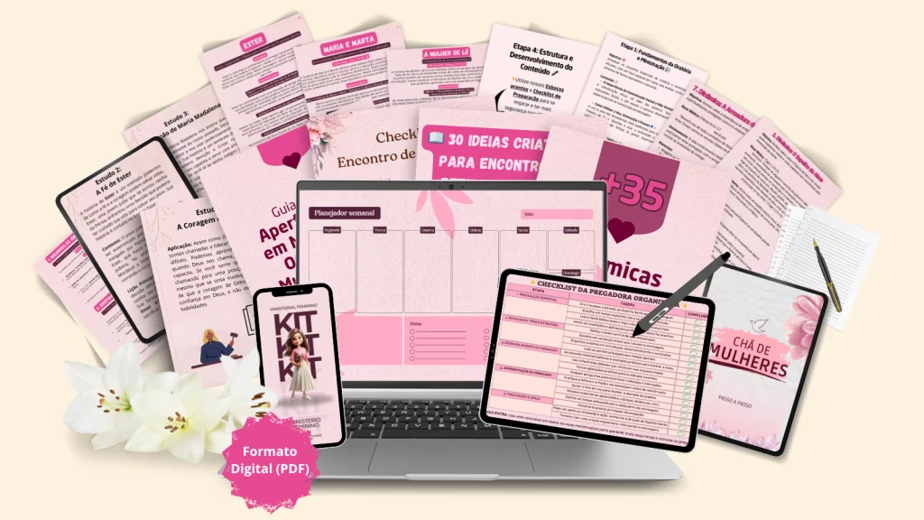 Você vai ter materiais prontos, ideias práticas e um passo a passo completo para organizar encontros femininos com beleza, propósito e direção espiritual — tudo sem improvisos e sem estresse.