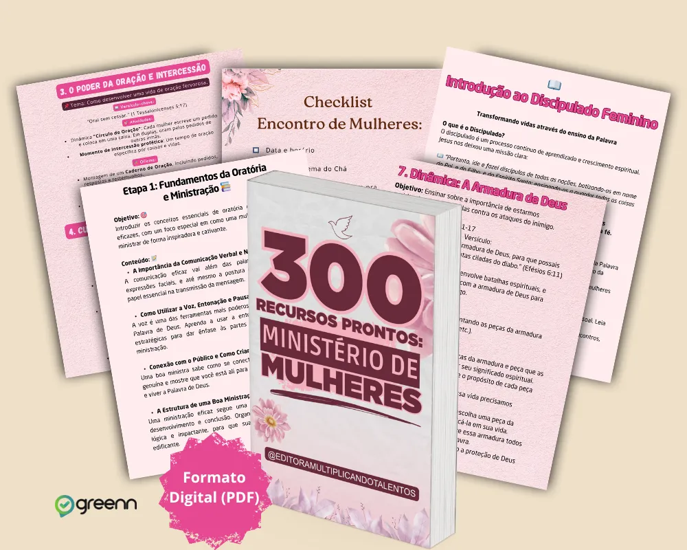 Com este material você terá ferramentas necessárias que poderá colocar em ação imediatamente e fortalecer seu Ministério de Mulheres